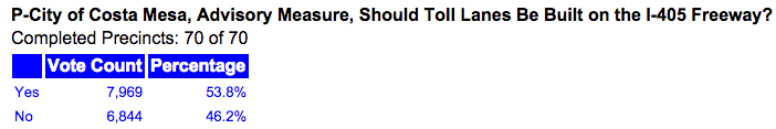 Geoff, I agree with you 100%. What happened in Costa Mesa was very different than in the rest of the County. It should be very telling to our OCGOP.