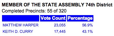 Here's the second slice of the pie... If you want to view the results yourself just click HERE and scroll down the races you're following. I'll provide regular updates here for awhile. This time around I've added the Assembly and Supervisor races.